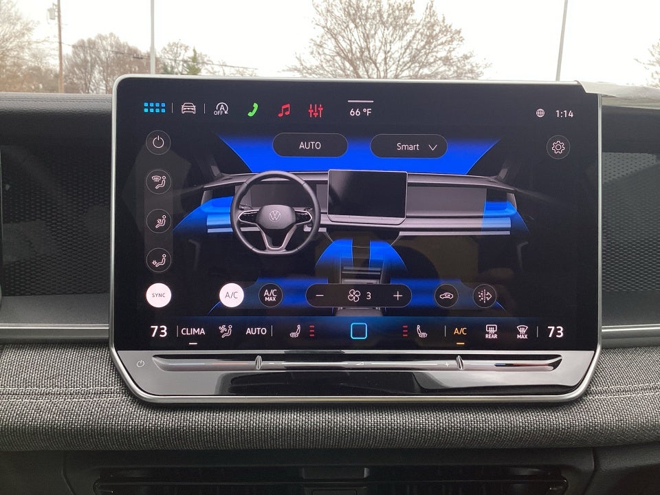 - MIB4 Composition Media Touchscreen w/AM/FM Radio -inc: WMA/MP3/FLAC player w/USB, 12.9" touchscreen multi-function center display w/backlit sliders, voice control, 6 speakers + center speaker (7 speakers total) sound system, capability for in-vehicle 4G LTE enabled Wi-Fi (cellular data plan required; includes limited trial), capability for connected vehicle services (capabilities for services vary; requires enrollment or subscription), Bluetooth® connectivity (for compatible devices), SiriusXM w/360L (w/3-month free trial subscription; 360L services require acceptance of Car-Net terms), App-Connect smartphone integration (w/Apple CarPlay, Android Auto and MirrorLink) via USB, wireless App-Connect smartphone integration (for compatible devices) w/multi-phone pairing capability, 45W fast charging (for compatible mobile phones and accessories) via USB in both rows and Qi wireless inductive charger, cooled, up to 15W (for compatible mobile phones and accessories) All connected vehicle services are subject to terms and limitations. Some services require a paid subscription. See dealer or vw.com/connected for important details.
