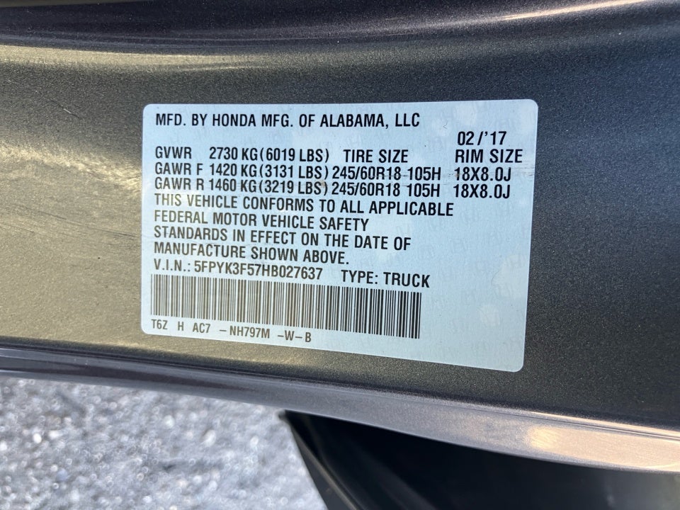 FLOW CERTIFIED! 12 MONTHS/12000 MILE WARRANTY 3 day money back guarantee and a free maintenance package on this 2017 Honda Ridgeline Gray RTL! **
