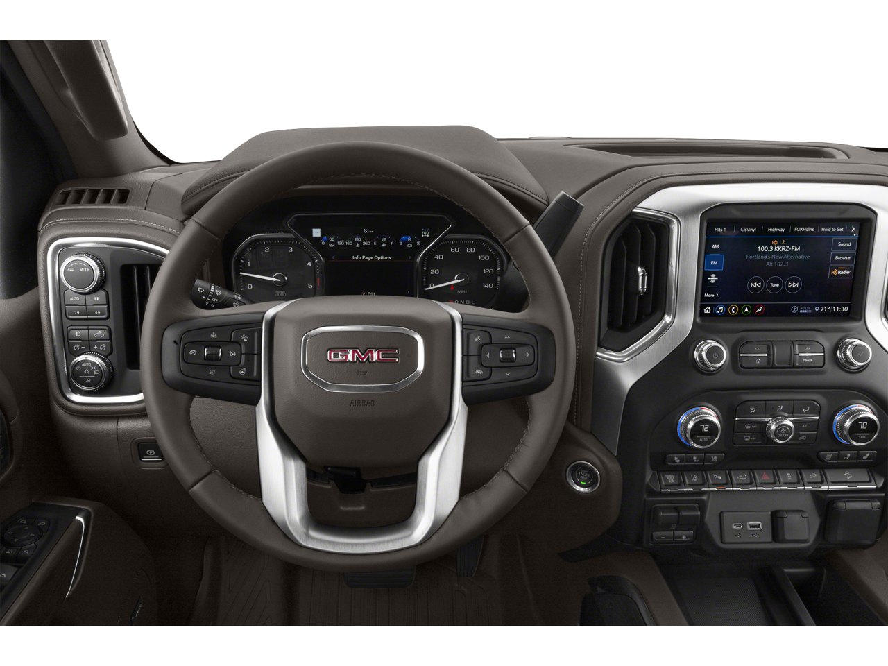 • Audio system, Premium GMC Infotainment System with Navigation and 8" diagonal color touch-screen includes multi-touch display, AM/FM stereo, Bluetooth® streaming audio for music and most phones; featuring Android Auto and Apple CarPlay capability for compatible phones, advanced voice recognition, in-vehicle apps, personalized profiles for infotainment and vehicle settings. Includes greater memory. (Includes (PZ8) Hitch Guidance with hitch view.)