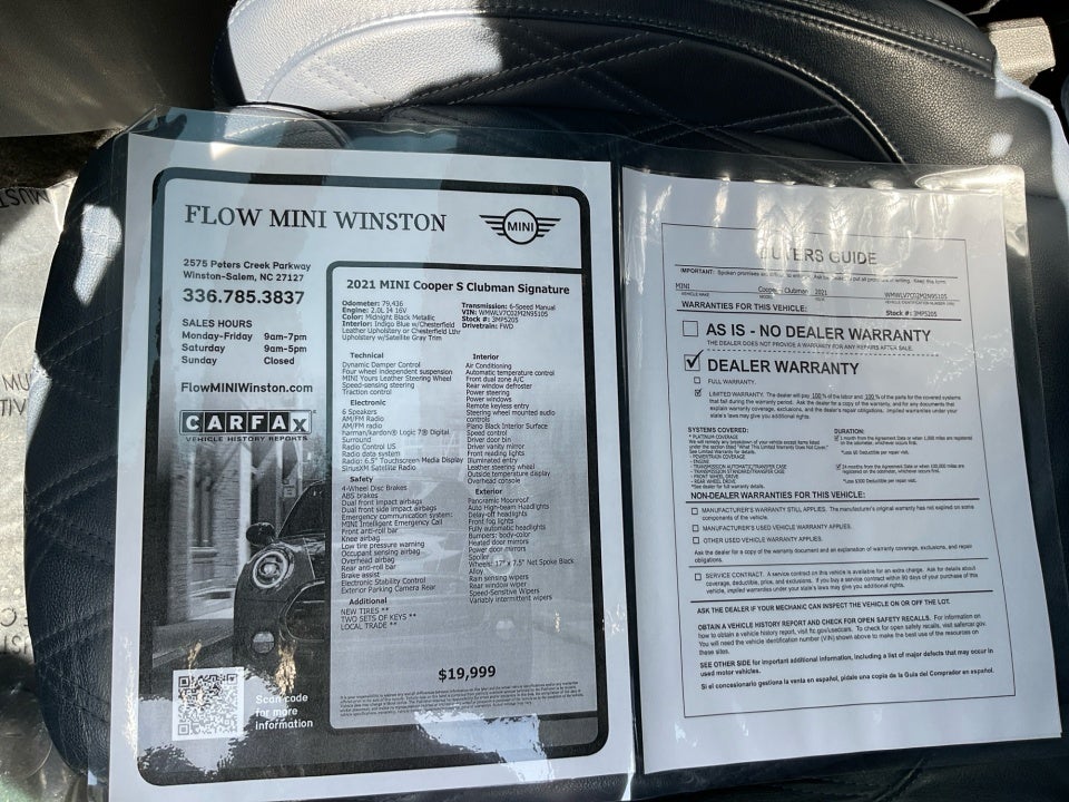 Why Buy From Flow: - Low no haggle prices made it Fast easy and transparent. - Quality Reconditioning Process made any used car nearly new reconditioning report and Carfax report posted online for your review. - Warranty on every vehicle we sell. - 2 year maintenance at no charge to you. - 3 day money back guarantee. - Great selection with our large network we will bring you any car that you like at no additional charges. At Flow MINI of Winston Salem we carry the best selection of excellent used cars trucks and SUVs in the Piedmont Triad N.C. Looking forward to serving you. We are on I-40 just off exit 192 in Winston Salem. Call to verify availability (336)785-3837.