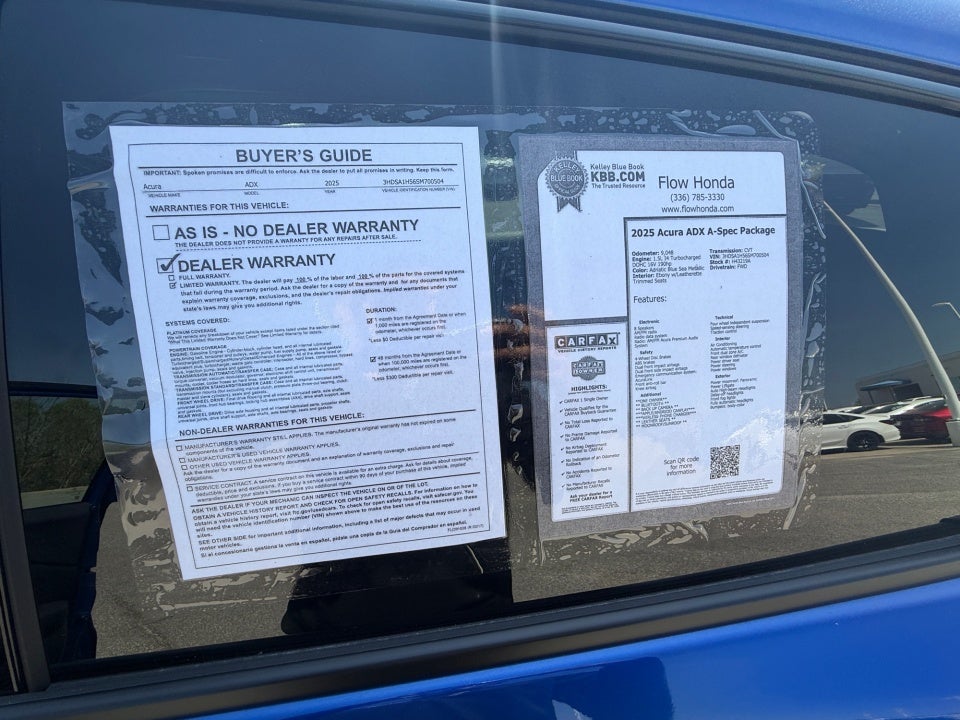 FLOW CERTIFIED! 4YR/100 000 MILE WARRANTY with $300 deductible and a free maintenance package on this 2025 Acura ADX Adriatic Blue Sea Metallic A-Spec Package! **