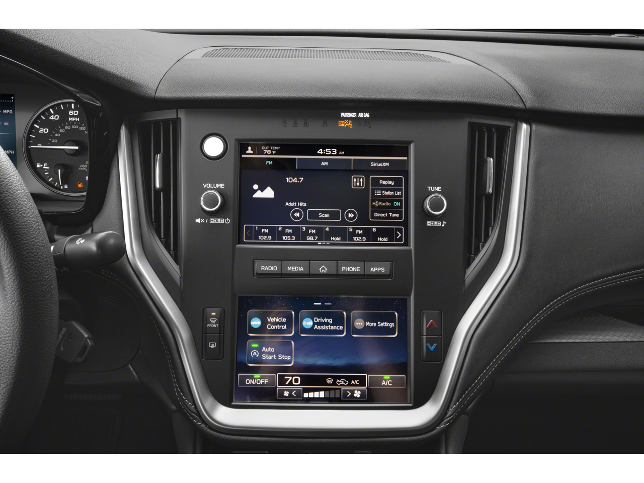- Radio: Subaru Dual 7.0" Multimedia System -inc: AM/FM stereo, HD Radio, multi-touch gesture high resolution display screen, voice activated controls, Bluetooth® audio streaming and hands-free phone connectivity w/SMS text messaging (refer to subaru.com for cell phone compatibility), iPod control capability, SiriusXM (4 months free trial/subscription required after), SiriusXM Travel Link (3 years free trial/subscription required after), smartphone integration for Android Auto and Apple CarPlay, USB audio system update, audio/Bluetooth® steering wheel control switches, 4 speakers, 3.5mm illuminated front auxiliary input jack, illuminated front USB-A input/charge port and roof mounted satellite