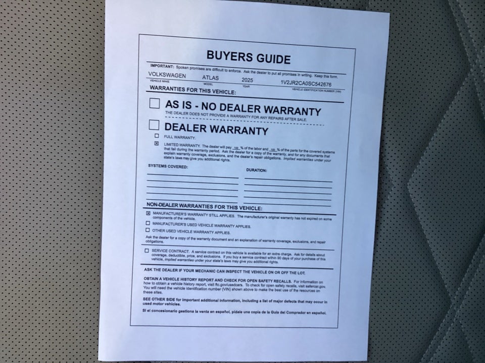 - Vehicle Name: Volkswagen Atlas