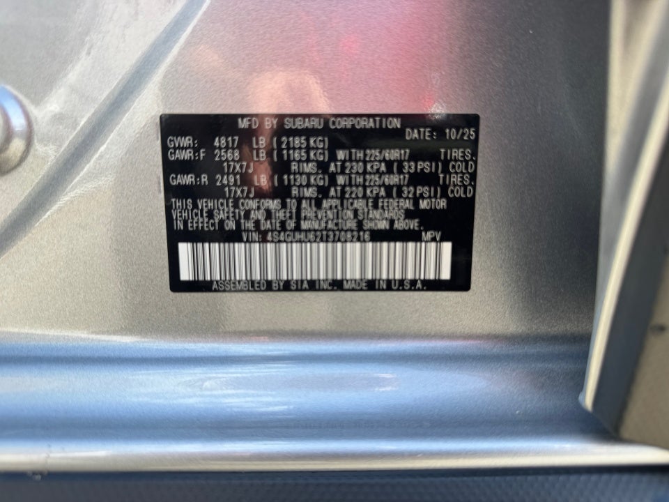 Subaru EyeSight Heated Seats Heated Steering Wheel Blind Spot Detection Reverse Automatic Braking Rear Cross Traffic Alert Harmon Kardon Sound System Power Moonroof LED Fog Lights Wireless Phone Charger 3500-lb Towing Capacity Lane Centering Assist.
